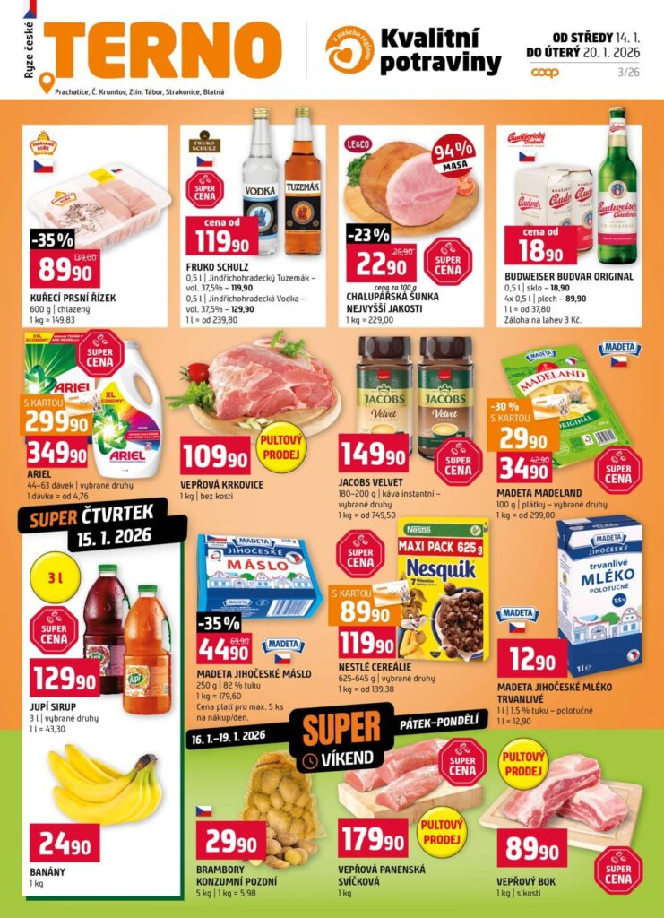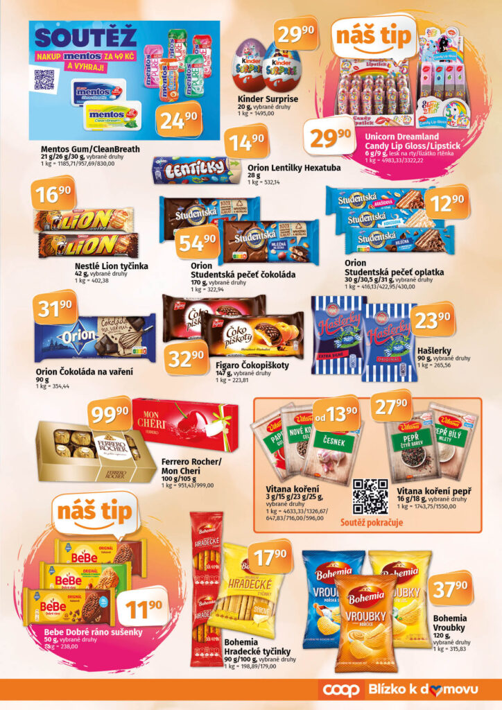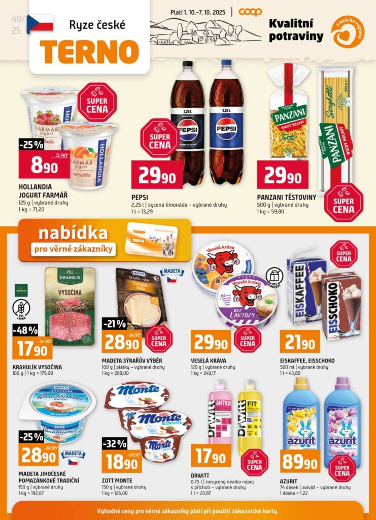COOP | TERNO, COOP | TIP, COOP | TUTY a COOP | JEDNOTA – podle toho poznáte, který leták platí právě pro Vaši prodejnu.