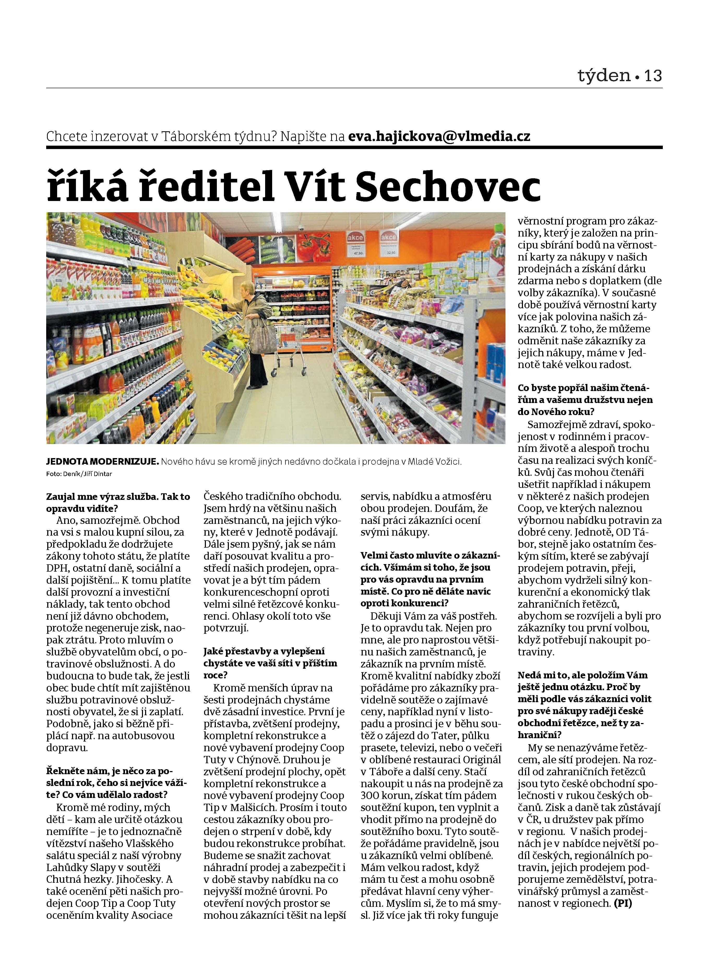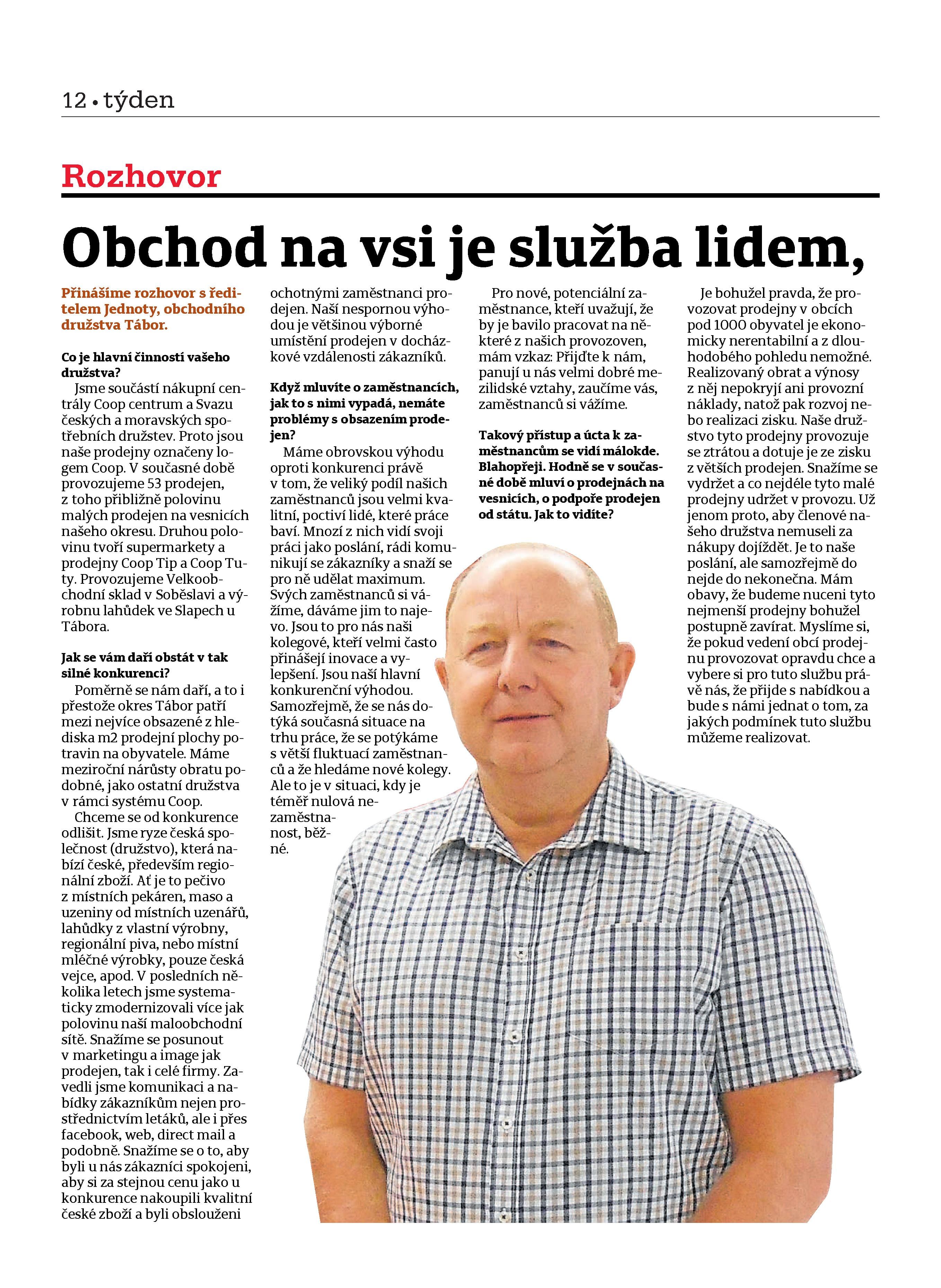 Článek, který vyšel v týdeníku Táborský týden ve středu 21. listopadu 2018.