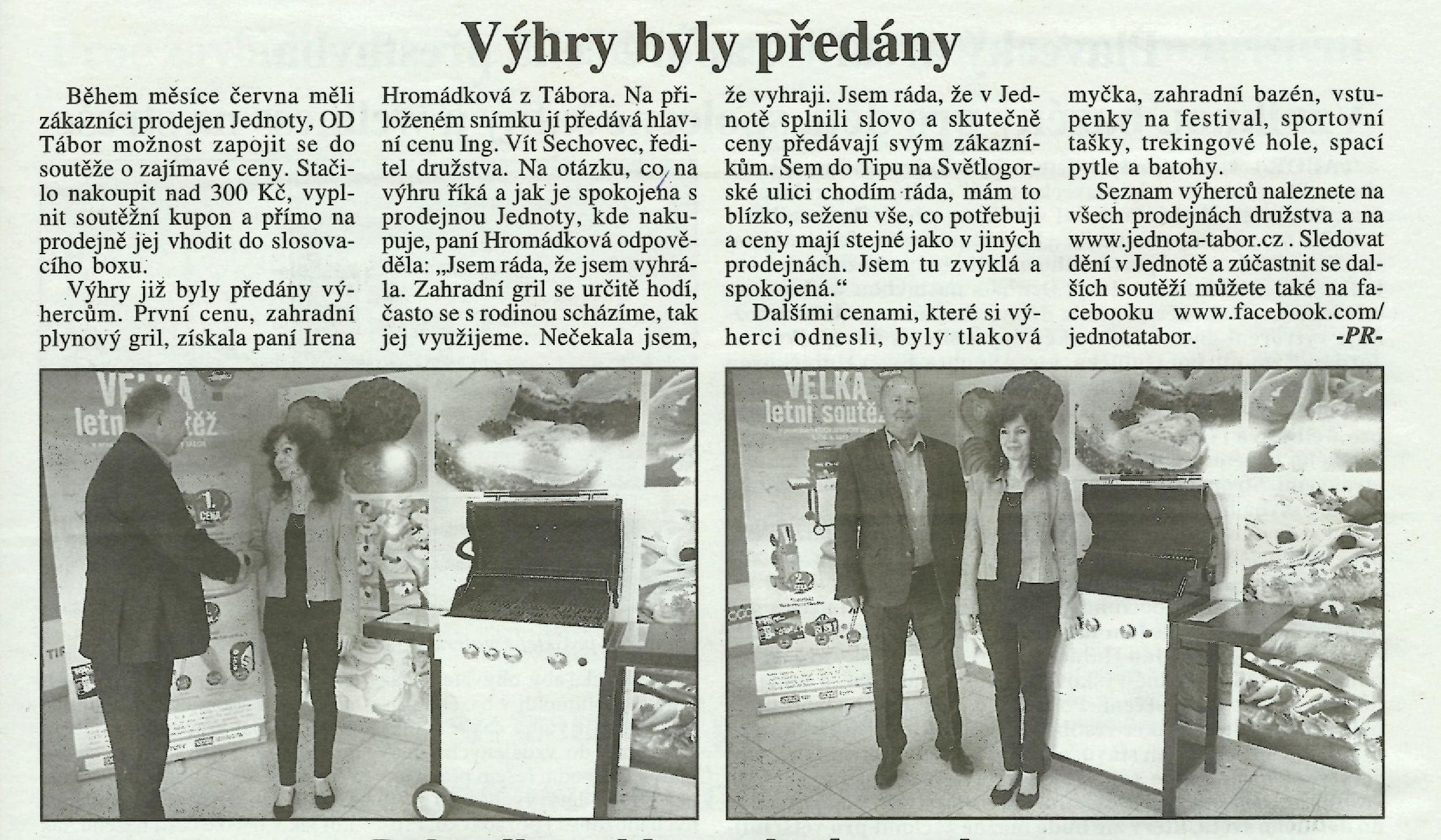 Článek vydaný v týdeníku Táborsko ve středu 9.8.2017: