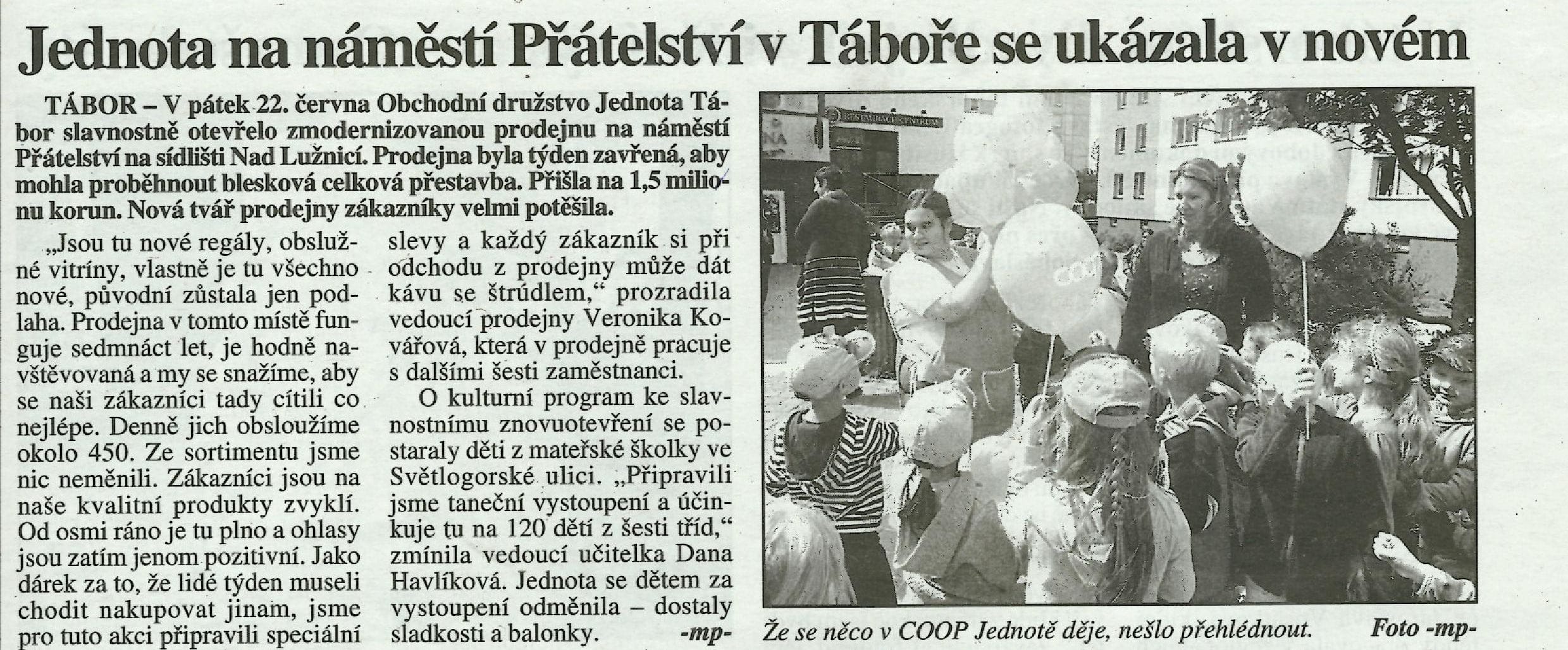 Článek zveřejněný v týdeníku Táborsko ve středu 27. června 2018 a na webu Jižní Čechy Teď dne 22. června 2018: