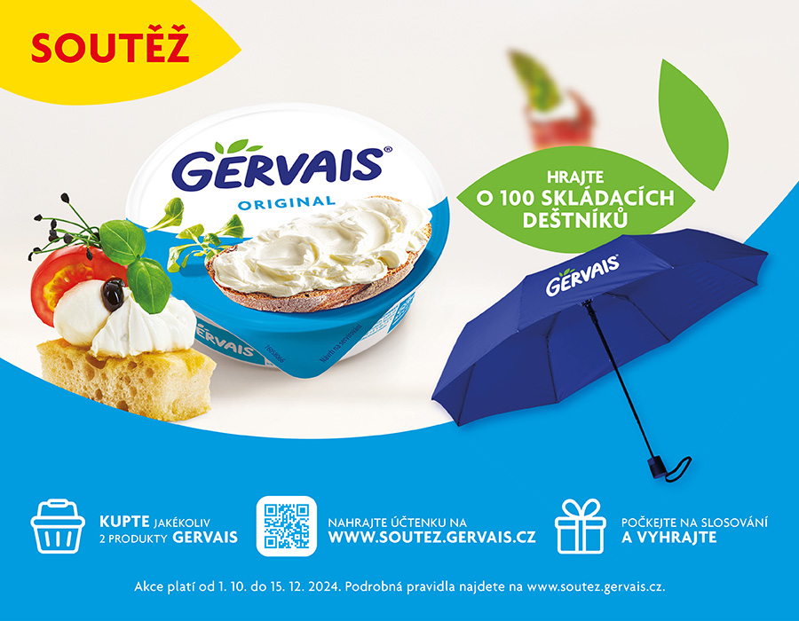 Kupte jakékoliv 2 produkty Gervais v prodejnách COOP Jednoty Tábor > zaregistrujte se do soutěže https://soutez.gervais.cz/destniky/ > počkejte na losování a vyhrajte!
