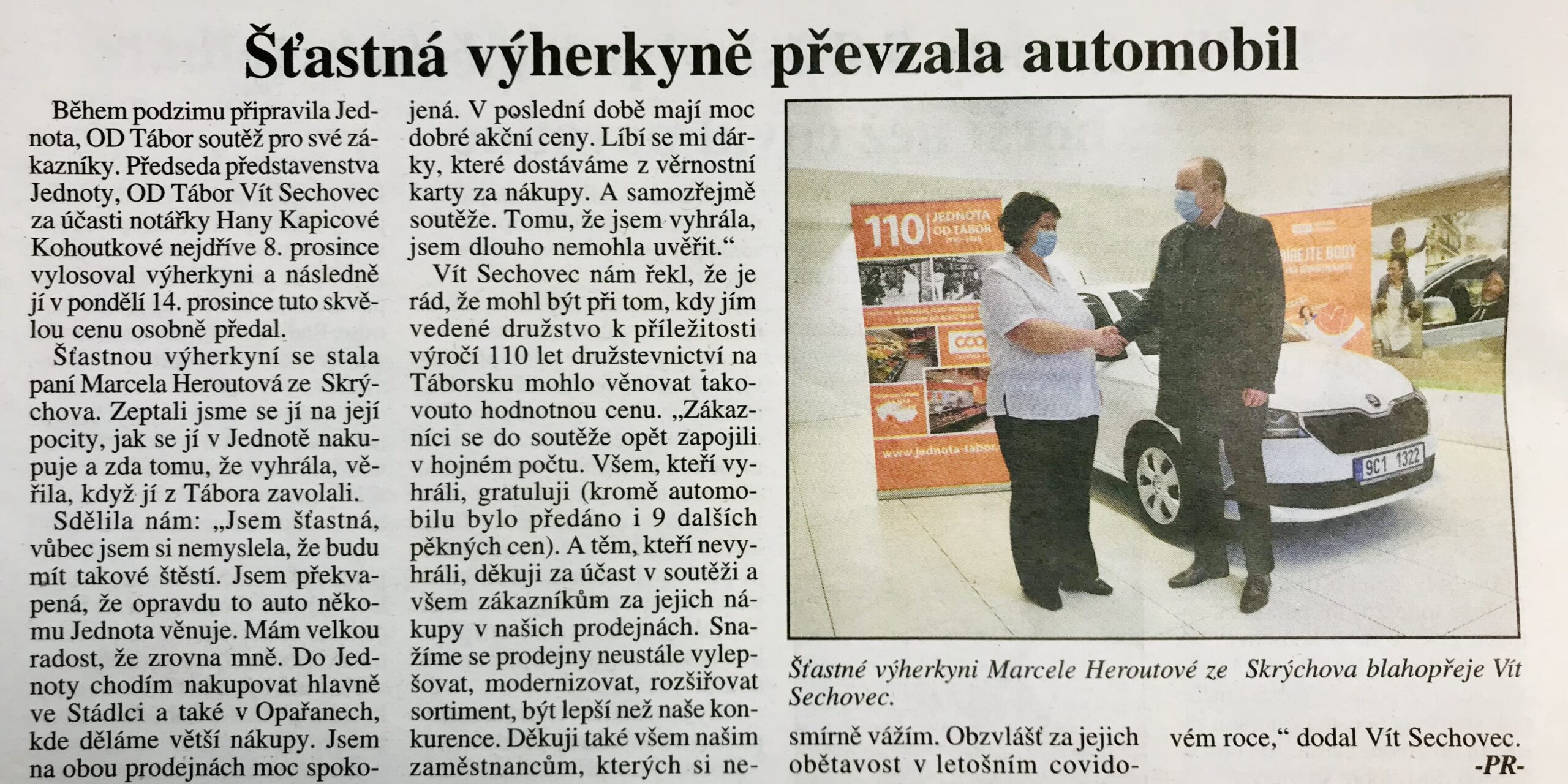 Článek, který vyšel v týdeníku Táborsko ve středu 16. 12. 2020: