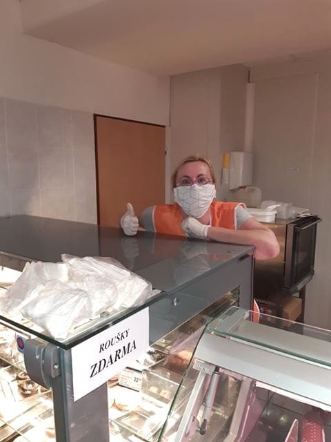 Děkujeme našim prodavačkám/prodavačům, že myslí i na zákazníky a pokud mohou, tak se s nimi o našité roušky rozdělí.