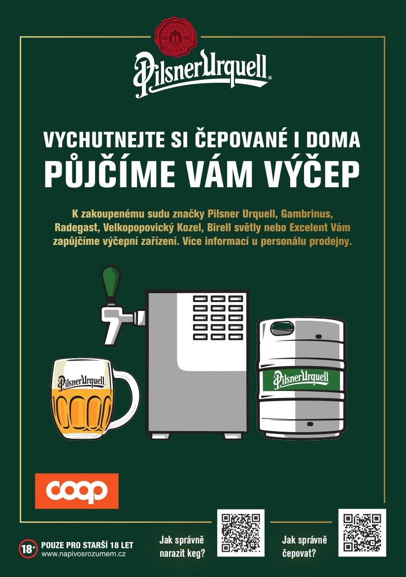 Na našich vybraných prodejnách si můžete zakoupit sudové pivo a zároveň máte možnost zapůjčit si výčepní zařízení.
