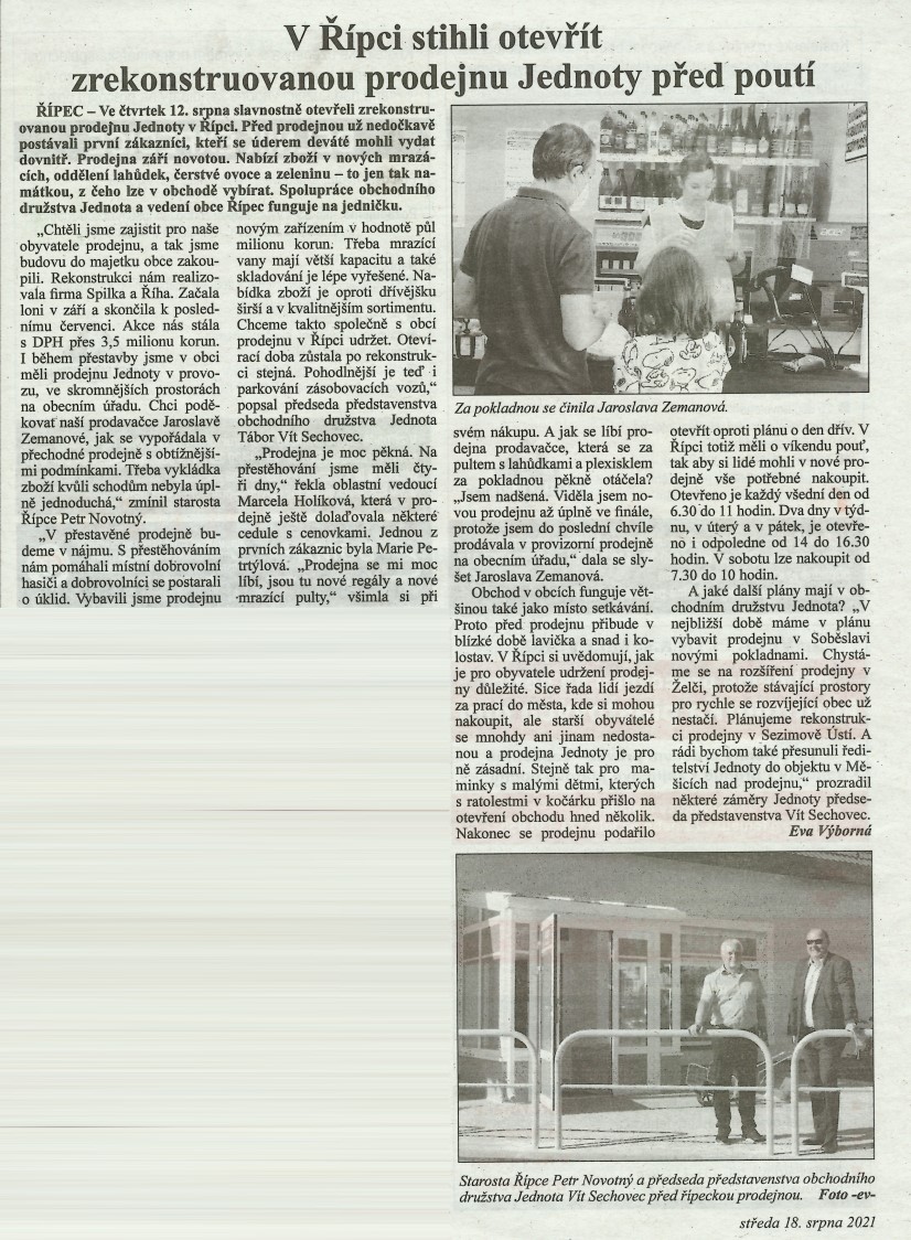 Prodejna v Řípci otevřela po rekonstrukci ve spolupráci s obcí 12. 8. 2021
