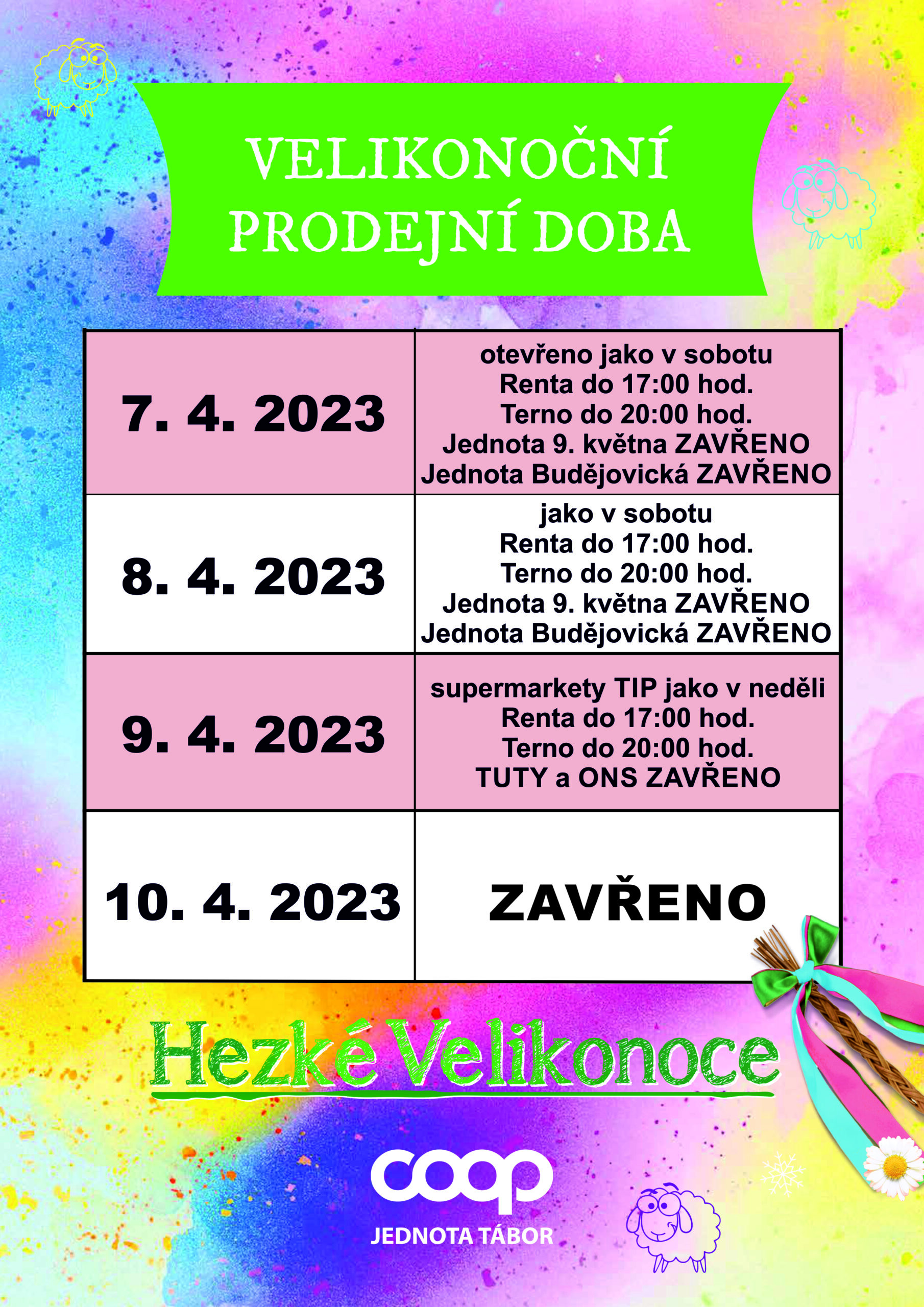 PRODEJNÍ DOBA O VELIKONOCÍCH 7. – 10. 4. 2023