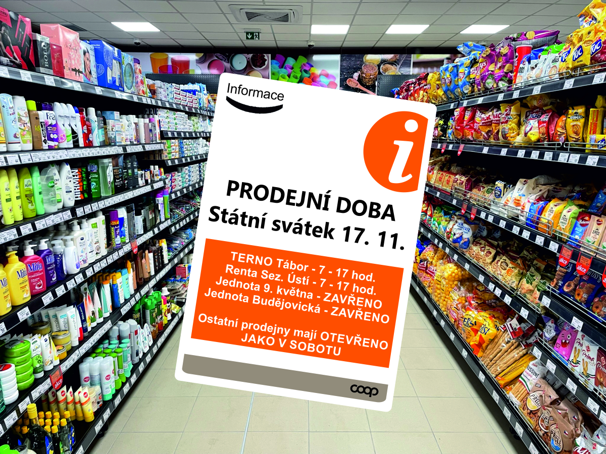 PRODEJNÍ DOBA – STÁTNÍ SVÁTEK 17. 11. 2023 – úprava prodejní doby viz info níže.