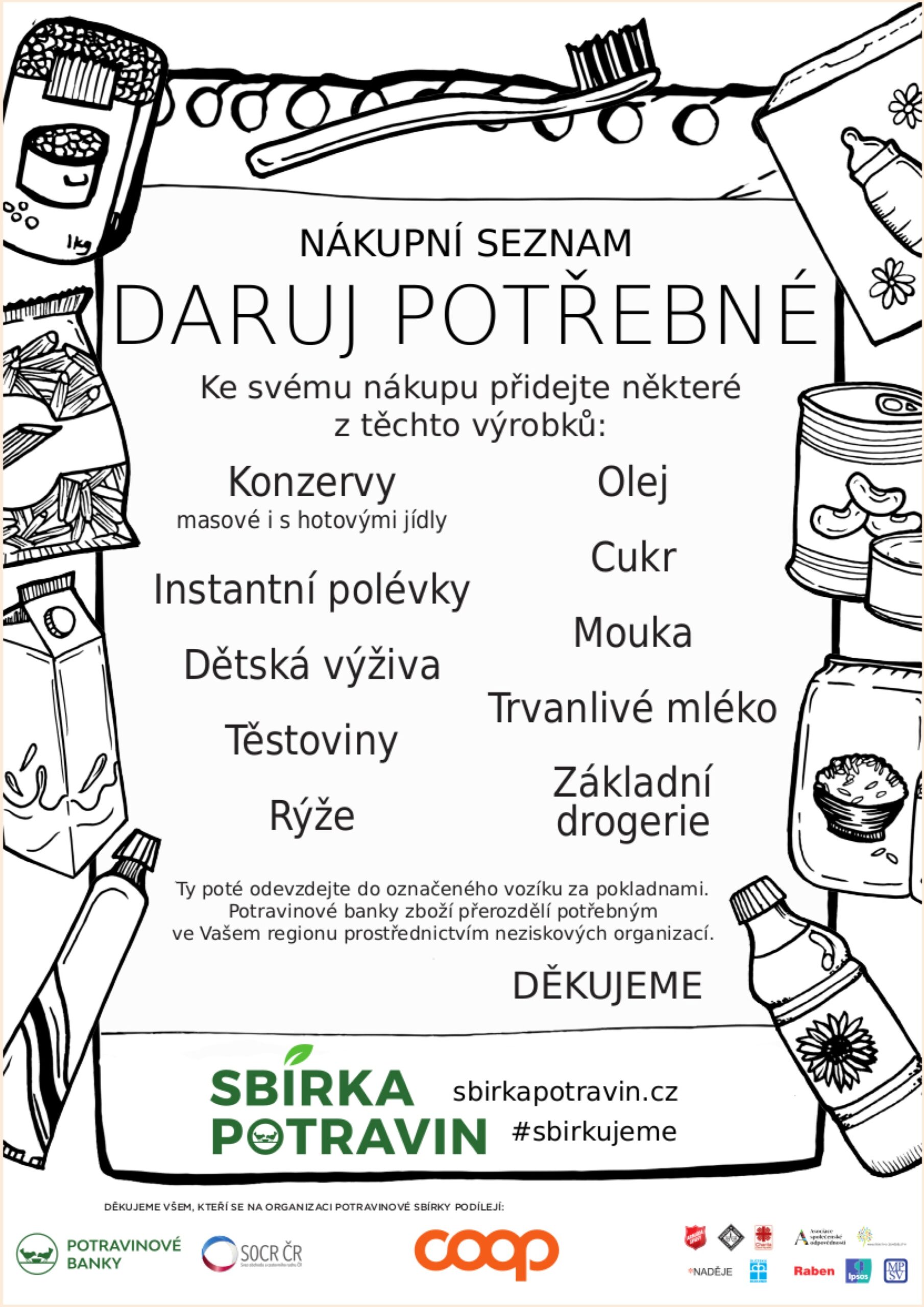 v sobotu 12. 11. 2022 proběhne celorepublikové podzimní kolo Sbírky potravin pro potřebné.