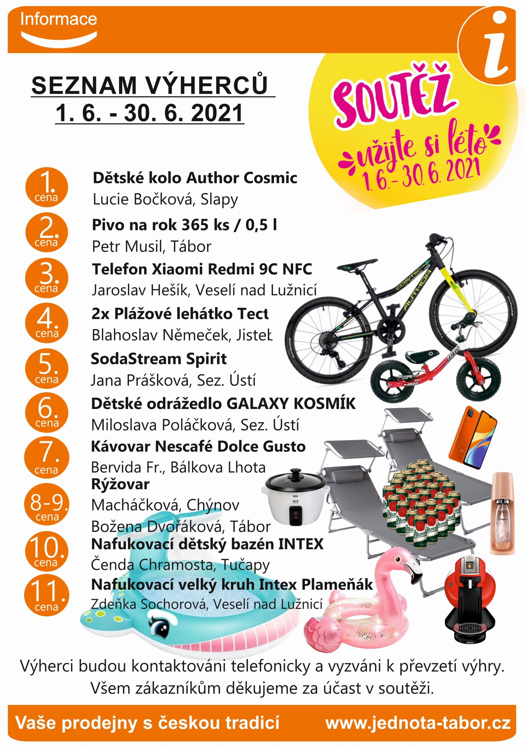 Soutěž „užijte si léto“ pro naše zákazníky probíhající od 1. 6. do 30. 6. 2021 už zná své výherce. Ze všech soutěžících ze všech prodejen bylo vylosováno 11 výherců, kteří byli kontaktováni a v následujích dnech jim budou předávány výhry. Foto z losování a seznam výherců viz níže.