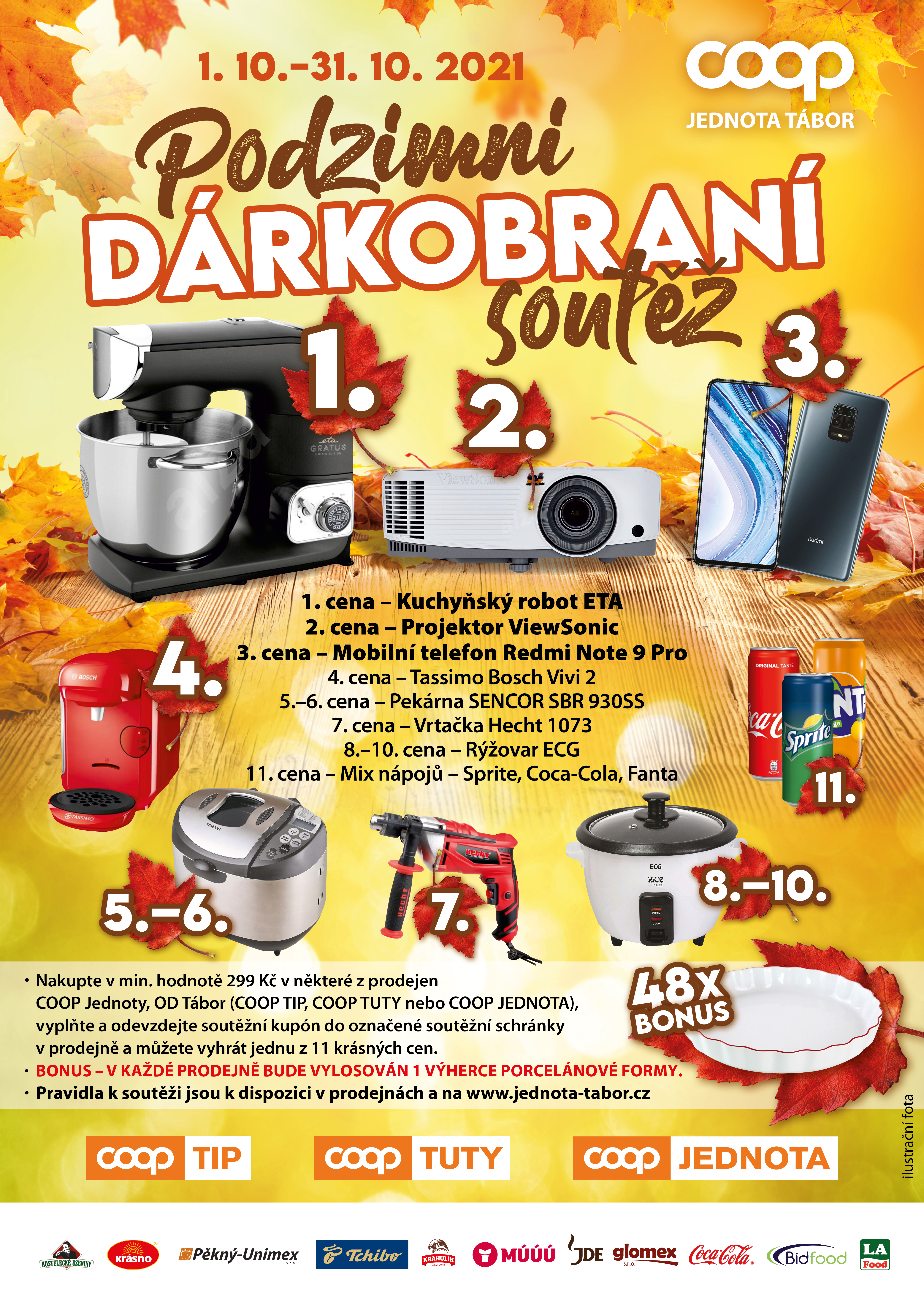 Zákaznická podzimní soutěž „DÁRKOBRANÍ“ od 1. 10. do 31. 10. 2021 v prodejnách COOP Jednoty Tábor (TIP, TUTY A JEDNOTA) o krásné ceny.